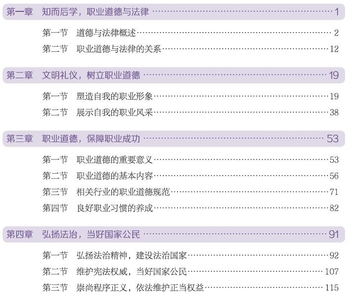 本书是按照教育部 2008 年 12 月颁布的《中等职业学校德育课职业道德与法律教学大纲》要求为蓝本,以教育部于 2013 年 3 月印发的《中等职业学校德育课贯彻党的十八大精神教学指导纲要》为参考,力求贯彻党的十九大精神和《国家中长期教育改革和发展规划纲要(2010—2020 年)》等文件精神。