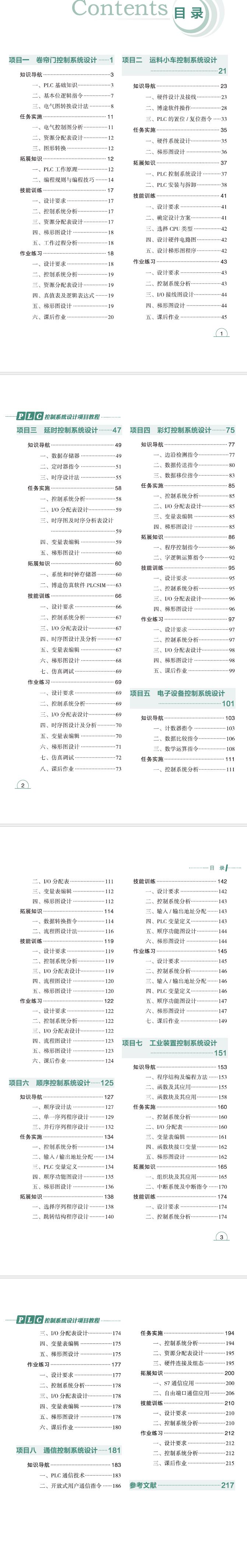 本书包括卷帘门控制系统设计、运料小车控制系统设计、延时控制系统设计、彩灯控制系统设计、电子设备控制系统设计、顺序控制系统设计、工业装置控制系统设计、通信控制系统设计八个项目。