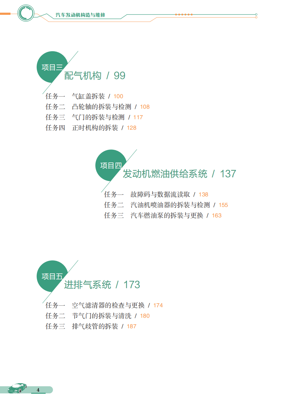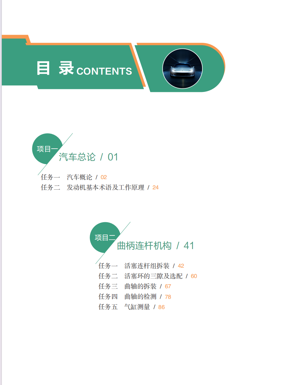 本书基于职业院校汽车维修专业学生的实际情况,通过新形态结构为学生实现“补足理论、锻炼技能、形成能力”的成长道路。通过本书,学生能够对传统往复活塞式汽油发动机的曲柄连杆机构、配气机构、发动机燃油供给系统、进排气系统、点火系统、冷却系统、润滑系统,进行从知识→原理→检修→实训→评价的全过程学习,并可以对实训车间的车型评分表进行调整,从而适应更多型号发动机的学习。