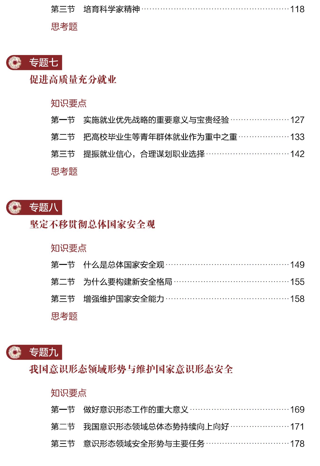 围绕大事要事和形势任务,聚焦宣传阐释党的创新理论,生动展现新时代实践成果,本书编写组秉持严谨态度、细致作风、科学精神,精心设计专题、认真组织编写,在新的一年新的学期,向大学生读者朋友奉献新的《大学生形势教育·2025春》。本书重点讲解在校大学生关心的推进中国式现代化重大理论和实践问题,以及经济形势科技创新、人民民主、民生就业、国家安全、大国外交等热点难点问题力求观点权威准确、语言通俗易懂、素材丰富多样。