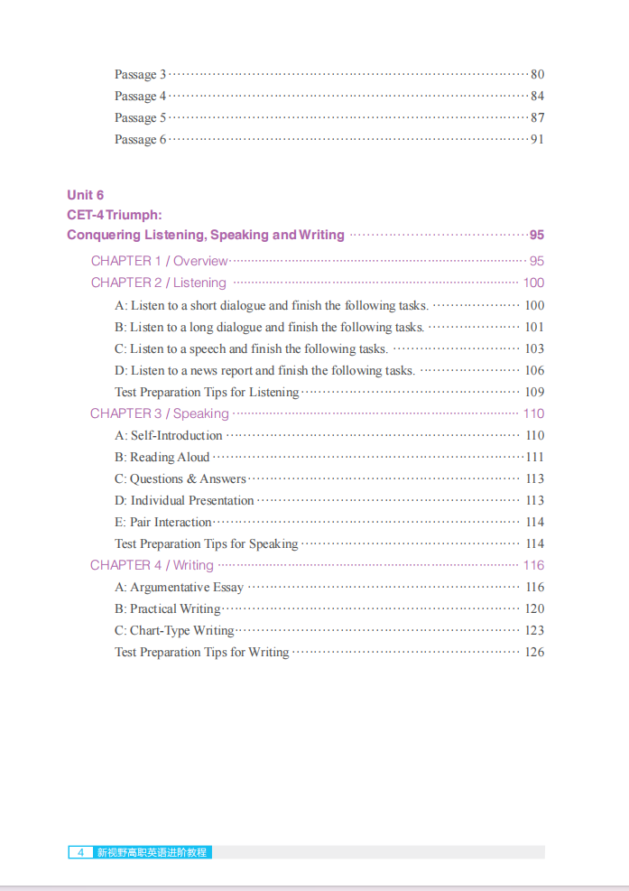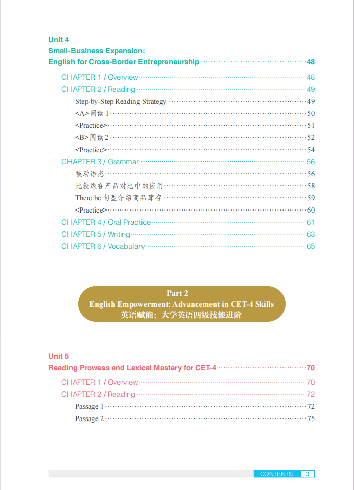 本教材以“文化传播、科技赋能、实践应用”为核心主线,聚焦高职学生英语综合能力 培养,兼顾语言基础与跨文化职业素养提升。教材既致力于培养“语言基础扎实、文化底 蕴深厚、创新思维活跃,同时具备良好四级应试能力的新时代技术技能人才”,又通过科学 编排四级高频词汇、解析阅读技巧,并将其有机融入各单元主题任务,帮助学生在实践中 提升词汇储备与文本分析能力。