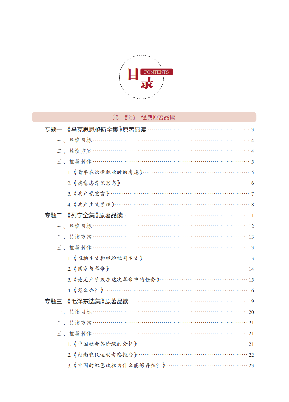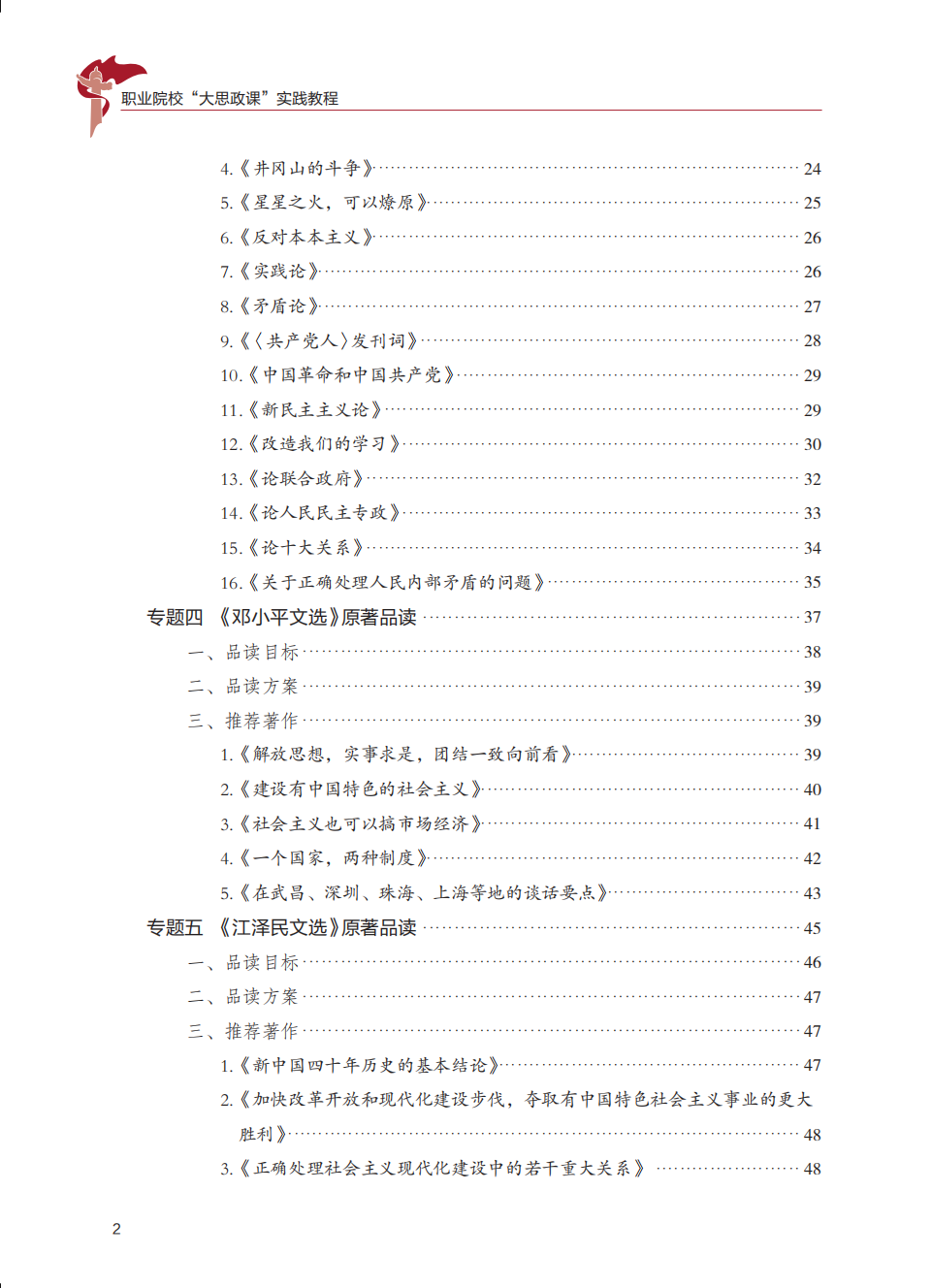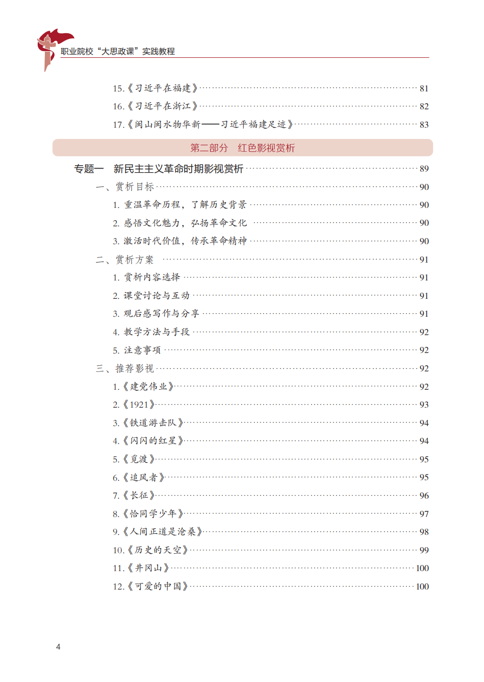 习近平总书记高度重视“大思政课”建设,多次发表重要论述,强调“‘大思政课’我 们要善用之,一定要跟现实结合起来”“把思政教育‘小课堂’和社会‘大课堂’有效融合 起来,把德育工作做得更到位、更有效”。“大思政课”是提升思政引领力的主渠道和主阵 地,是一种将思想政治教育与实践相结合的现代教育模式。习近平总书记的重要讲话,为 职业院校建设好“大思政课”,落实好和完成好新时代立德树人根本任务指明了方向,提 供了根本遵循。 职业教育作为一种类型教育,肩负着培育社会主义建设者和接班人的崇高使命;职业 院校学生,也是社会主义现代化建设的中坚力量。为推动思政教育与实践育人深度融合, 培育“手中有技、心中有德、眼中有光”的新时代劳动者,我们精心编写了这本《职业院 校“大思政课”实践教程》。本书创新性地从经典原著品读、红色影视赏析以及实践基地 导览等三个维度系统构建起职业院校“大思政课”实践教学体系。通过深入品读经典原著, 为学生筑牢坚实的理论根基;借助赏析红色影视作品,激发学生的爱国情怀;组织学生行 走实践基地,引导他们感悟红色文化、传承红色基因。同时,本书还创新性地提供了“经 典原著品读记录表”“读后感结构模式与写作要求”“红色影视赏析观后感模板”“社会调研 实践教学活动记录表”等图表,便于学生开展“大思政课”实践。