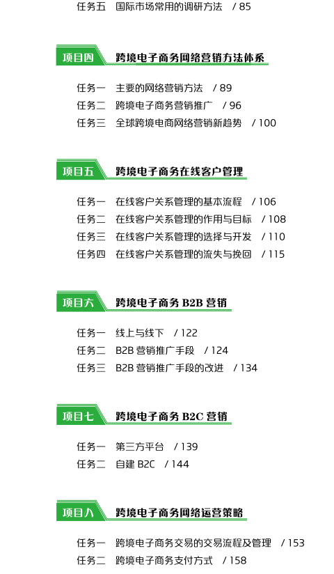 本书以培养读者跨境电子商务网络营销能力为核心,按照跨境电子商务网络营销的岗位要求及工作流程,围绕跨境电商网络营销概述、跨境网络精准营销、跨境电子商务市场分析、跨境电子商务网络营销方法体系、跨境电子商务在线客户管理、跨境电子商务B2B营销、跨境电子商务B2C营销、跨境电子商务网络运营等内容。